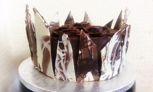 È un sapore molto nuovo e gustoso della torta al cioccolato di compleanno. Per prima cosa sciogli la torta e poi metti un grande tagliere sul tavolo. Conservalo con una carta cerata sul tagliere. Quindi sovrapponi il cioccolato fuso su di esso con uno spessore e una perfezione uniformi. Per ridurre le bolle d'aria, mettete un'altra carta cerata sullo strato di crema fusa. Posizionare il tutto compreso il tagliere all'interno del congelatore per 10-15 minuti. Dopodiché, riposare il cioccolato a freddo per 2-3 minuti. Quindi tagliarlo in vari pezzi indipendentemente da qualsiasi forma e dimensione. Quindi riporre nuovamente i frammenti nel congelatore finché non diventa duro e utilizzabile.