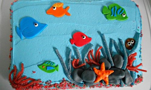 Coloro che festeggiano compleanni in estate in Italia è un soggetto preferito per loro. Per lo più in estate, abbiamo trovato festa a tema acqua come una festa in piscina o feste a tema pesce. È possibile utilizzare questa festa torta di pesce decorazione idea di abbinare con il tema della festa. Prima di tutto, è necessario una crema di burro blu glassa per diffondersi sul pan di spagna. Poi per fare alghe è necessario un tubo di glassa verde con una punta di petalo. Provare a fare l'immagine di tipo volant utilizzando il sacchetto tubo in avanti e poi consegnare indietro per strisce arruffate imperfette. Premere pesce svedese e bianco rotondo sei lascia sulla torta come desiderato. Per la perfezione utilizzare di nuovo la borsa tubo verde per decorare erba siamo sul lato inferiore della torta.