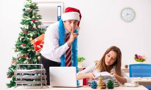La maggior parte delle volte la direzione superiore pensa come coinvolgere i dipendenti in questo Natale quindi una delle migliori idee è quella di scrivere alcuni cibi di Natale su carta come germogli, biscotti o altri prodotti alimentari e metterlo in un cappello, poi dire a tutti di prendere uno e portarlo si deve anche prendere uno e portarlo. Poi tutti insieme vi divertite con un po' di divertimento e cibo. A causa di tale idea si avrà un sacco di piatti allo stesso tempo e potrete godere la piccola festa in ufficio stesso.
