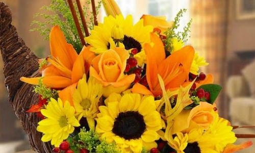 La cornucopia simboleggia l'abbondanza, ogni volta che avete intenzione di consumare un pasto questa cornucopia ha molta importanza e soprattutto durante la cena del Ringraziamento. Puoi decorare cestini di vimini a forma di cornucopia con girasoli fioriti, rose arancioni fresche e bellissime pedane rosse. Questa disposizione funziona meglio per la cena all'aperto o il centrotavola da pranzo. Ordina fiori Consegna e decorare la tua casa con fioriture fresche.