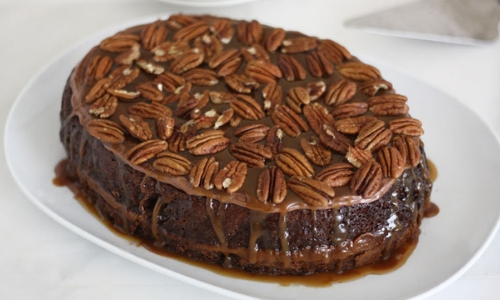Questa torta raffinata si prepara immediatamente entro una breve durata di dieci minuti. Ha bisogno di caramello salato, noci pecan, mandorle, datteri, pistacchi e un po 'di polvere di caffè macinato e sciroppo di cioccolato per il sapore. Puoi usare il burro di arachidi per fare un caramello salato. Mescolare lo zucchero e il burro di arachidi a fuoco basso fino a quando non si sciolgono bene. Una volta ottenuto addensare mandorle, pistacchi e altri ingredienti in questo caramello. Mettilo nello stampo della torta e lascia che arrivi nella temperatura della stanza. Ora giralo, la torta a testa in giù è pronta per dare una dolce sorpresa alla mamma.