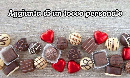 Un modo per aggiungere un tocco personale è includere messaggi o disegni sinceri sui cioccolatini. Puoi scrivere messaggi d'amore o disegnare piccole illustrazioni sulla superficie del cioccolato usando inchiostro commestibile o pennarelli per alimenti. È un modo semplice ma significativo per rendere i cioccolatini unici e adattati alle preferenze di tua madre.