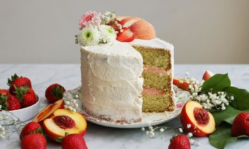 Abbiamo bisogno di cuocere una torta alla vaniglia regolare e congelare con vaniglia e glassa alla fragola. Si può spruzzare la salsa di fragole su di esso. È inoltre possibile decorare la torta con pezzi di fragola. Per esaltare l'aspetto della torta si dovrebbe decorare la torta con fiori commestibili. Questi fiori cambieranno completamente l'aspetto della torta e lo renderanno ancora più bello. Così gli ingredienti principali necessari per fare questa torta sono torta di fagioli alla vaniglia, fragola Meringue baci, burro di fragole, Ganache di cioccolato bianco, e fiori commestibili.